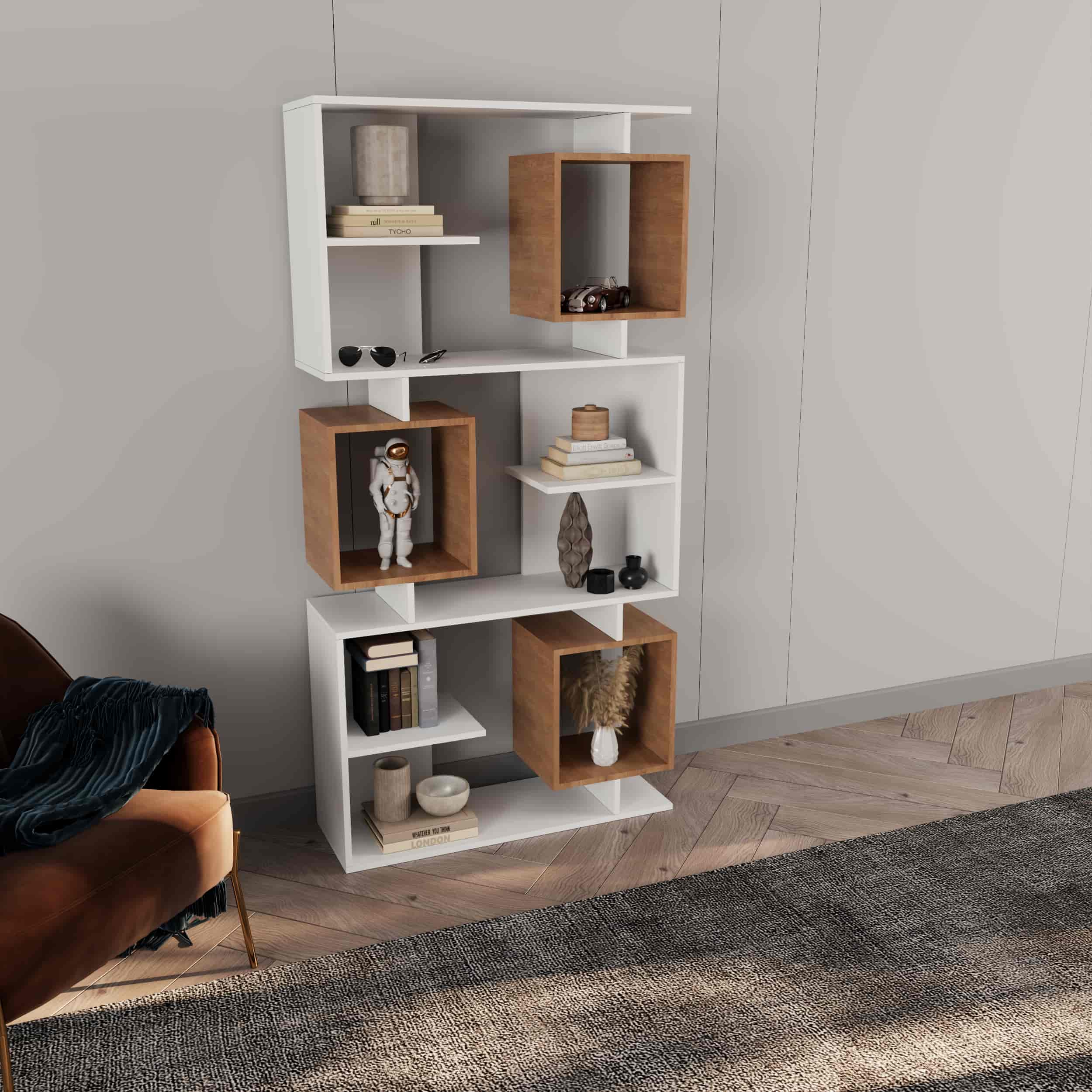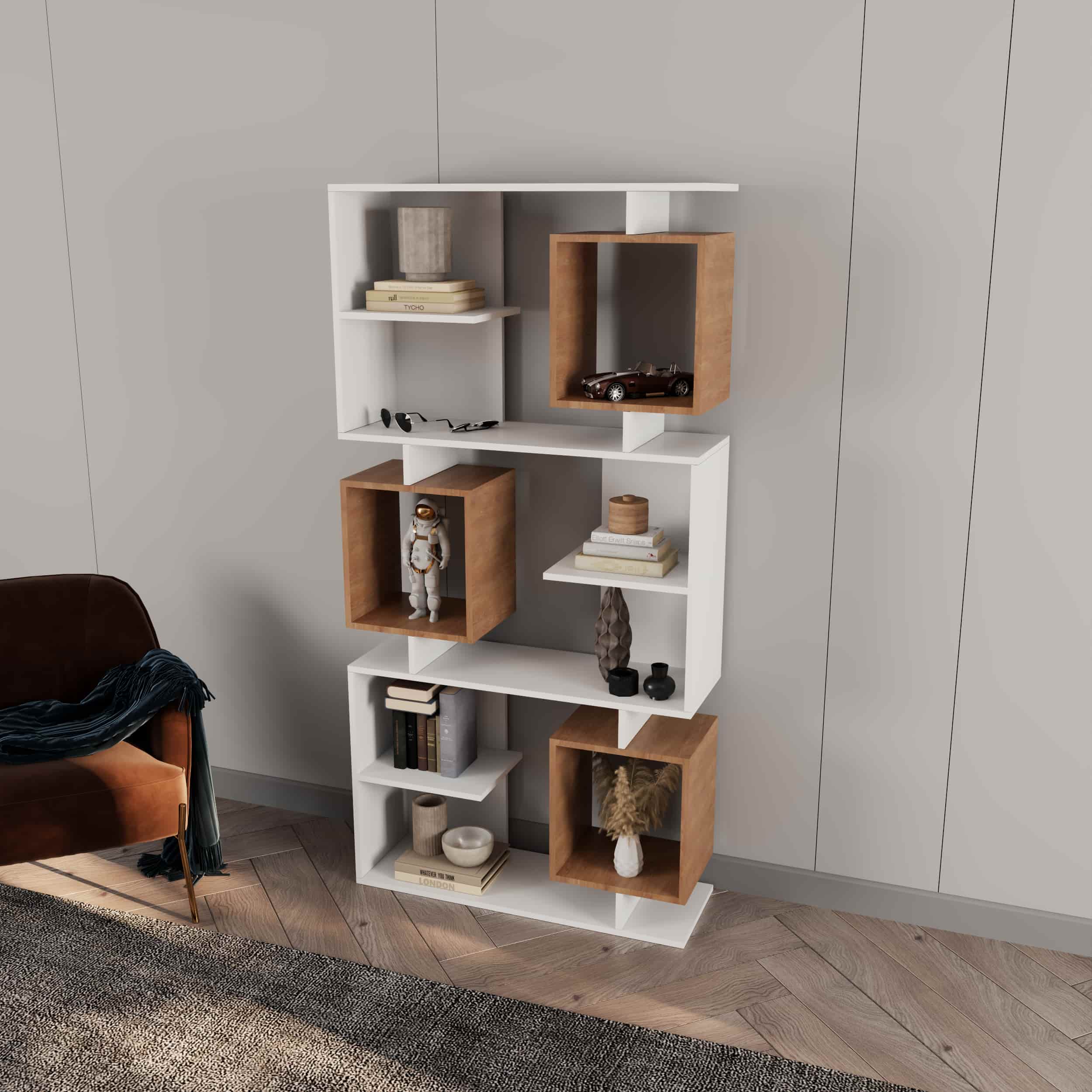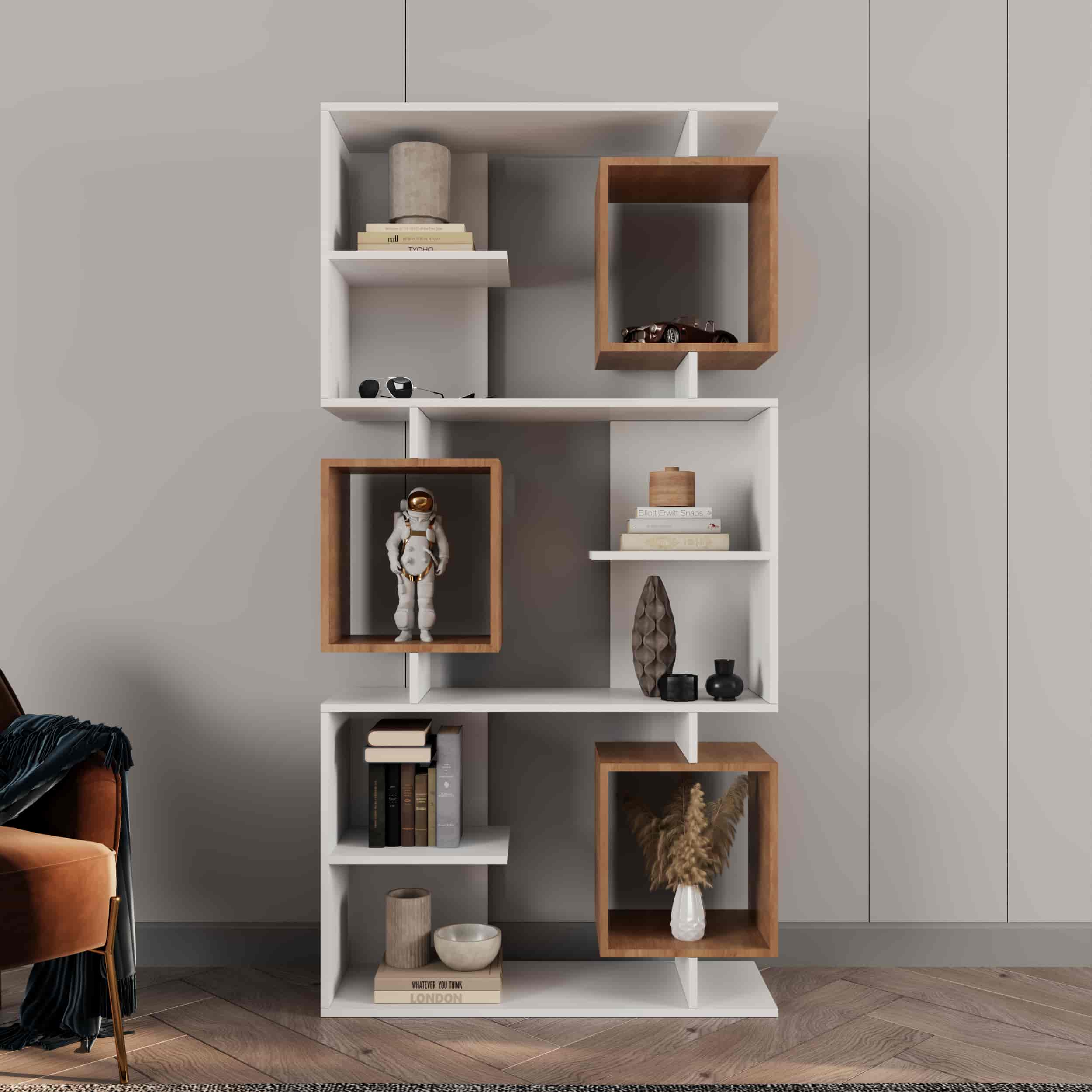 - قفسههای با قابلیت تنظیم ارتفاع برای قرار دادن کتاب، گجت، گلدان، فنجان و…