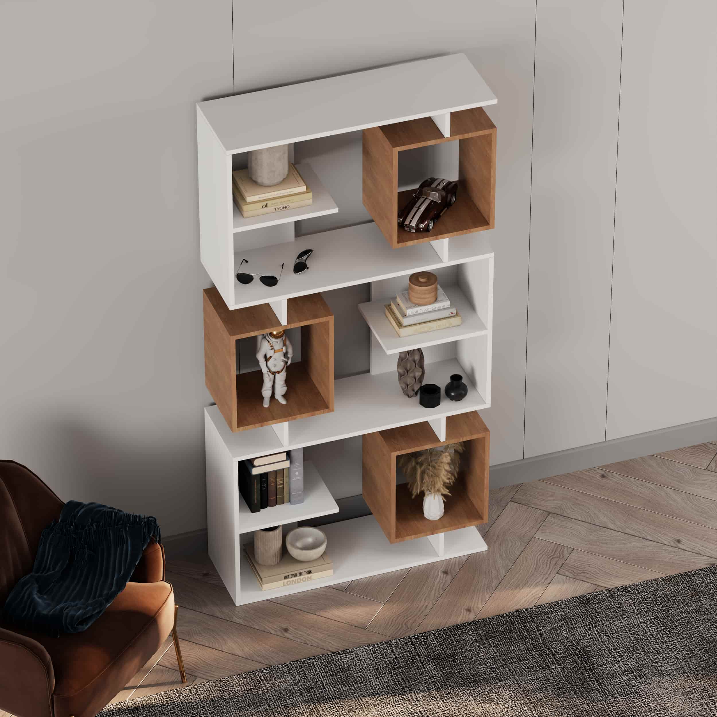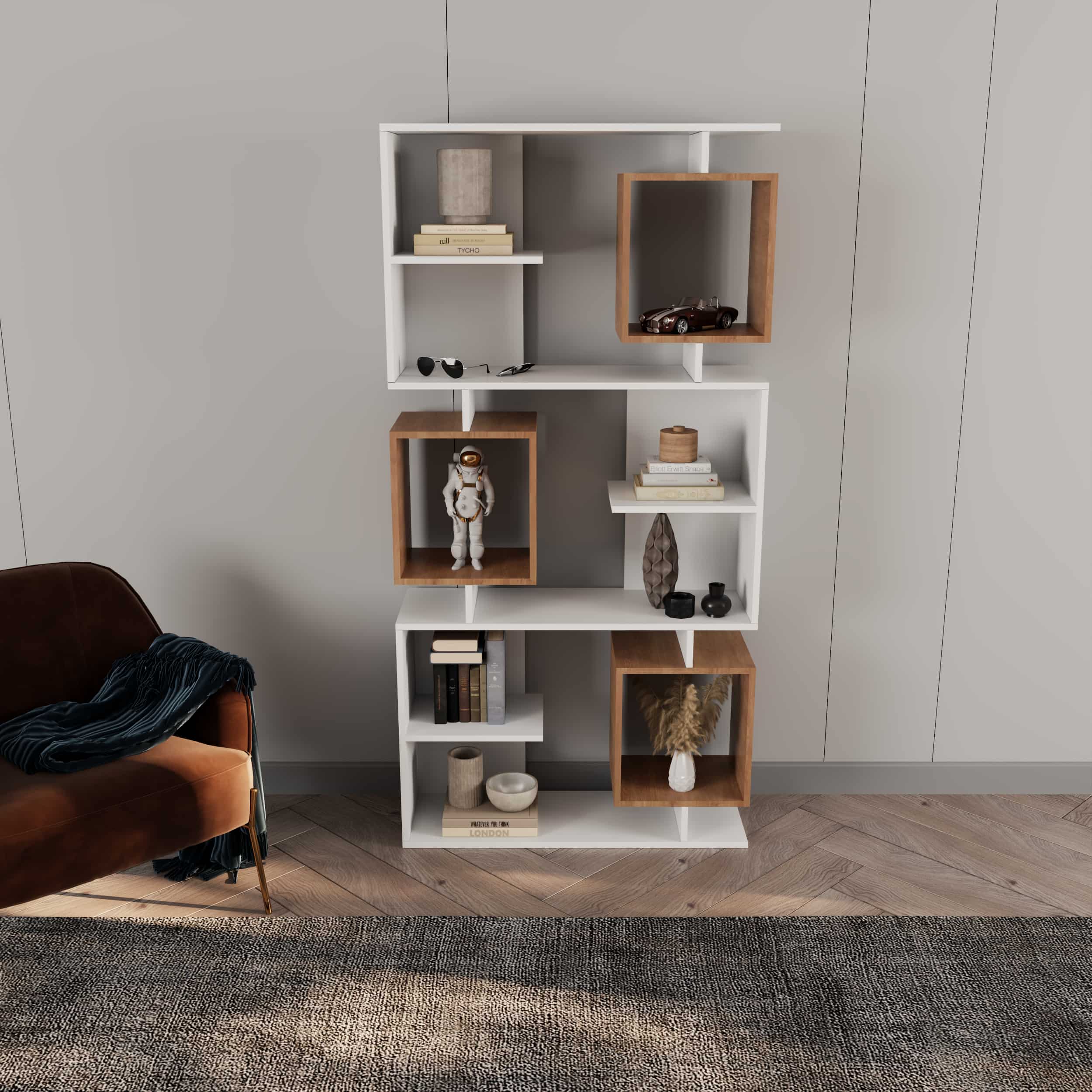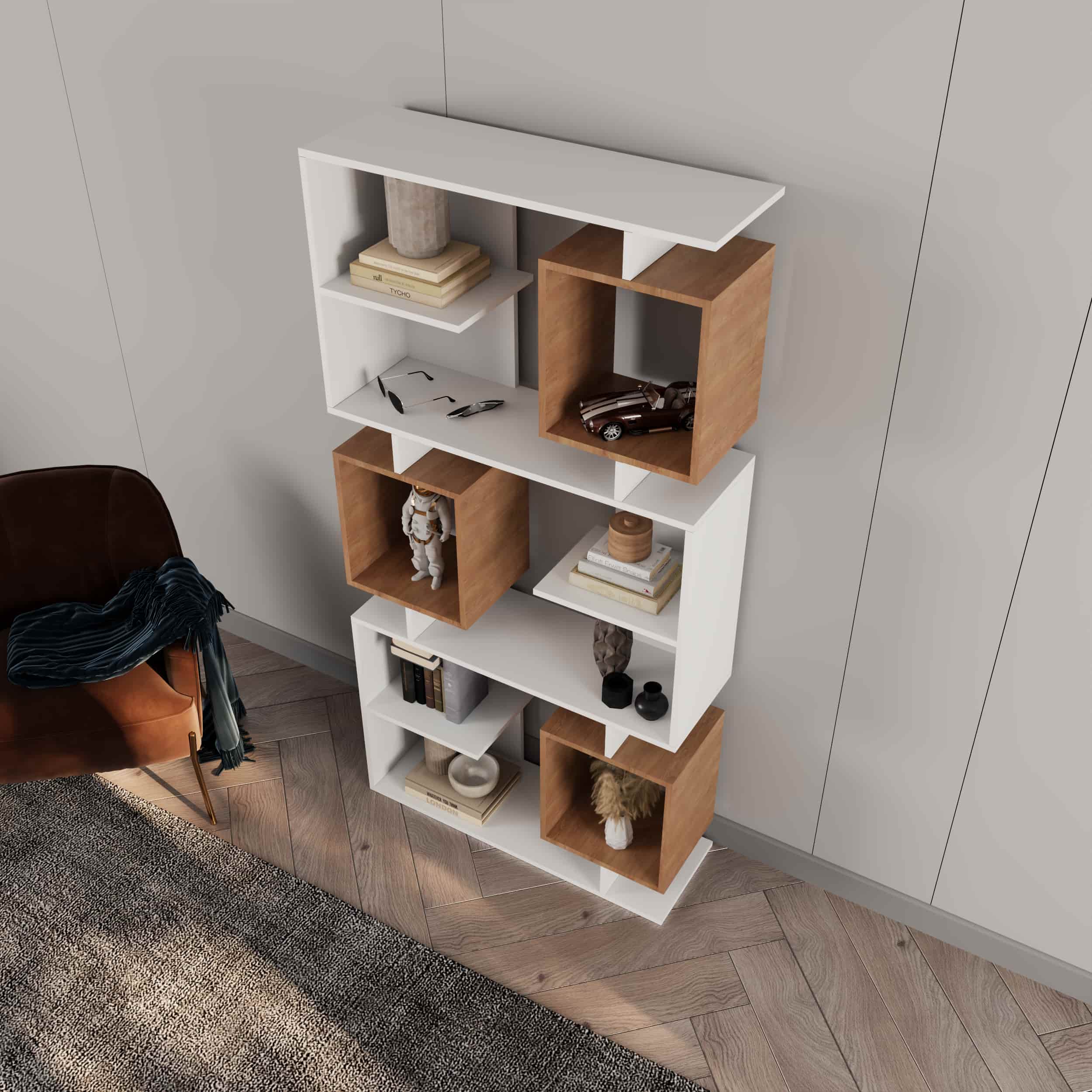 - قفسههای با قابلیت تنظیم ارتفاع برای قرار دادن کتاب، گجت، گلدان، فنجان و…
